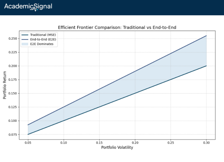 The authors constructed an "end-to-end" (E2E) framework that embeds the portfolio optimization problem directly into the neural network training loop. Instead of minimizing mean-squared prediction error, the model learns parameters that maximize the realized utility of the resulting portfolio.